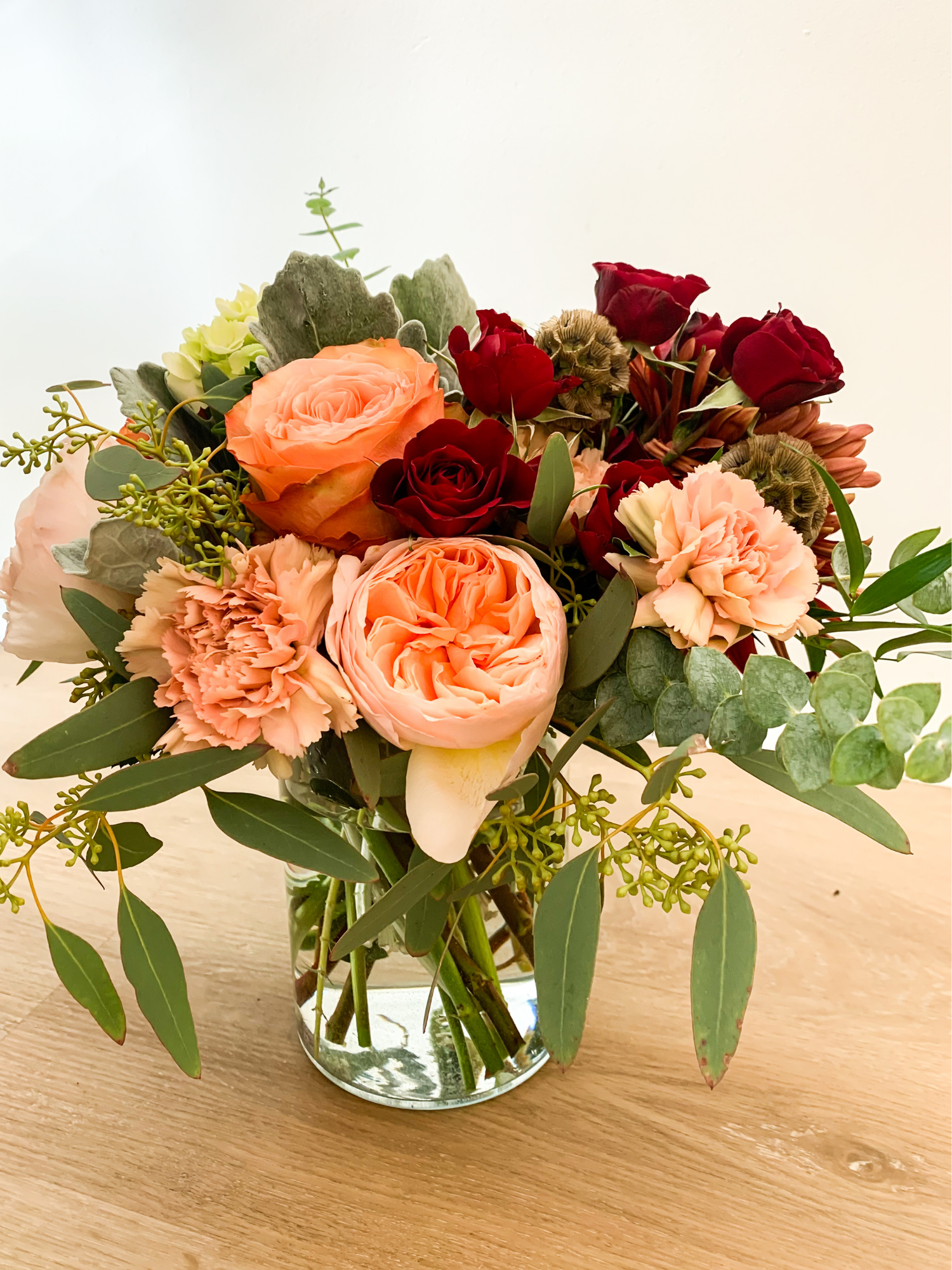 A lush garden style arrangement of mixed seasonal flowers and greenery. Flowers and vessel are designer’s choice. Our flowers are hand selected from local suppliers and are sourced from Ontario growers and ethically sourced growers abroad. The vessel may include a clear glass vase or a wood or ceramic container. If you have any special requests for the flowers, vessel or colour palette, please let us know and we will do our best to accommodate. Every design will be unique and created by one of our talented designers. The photos are for inspiration and arrangements will not be exactly as shown.