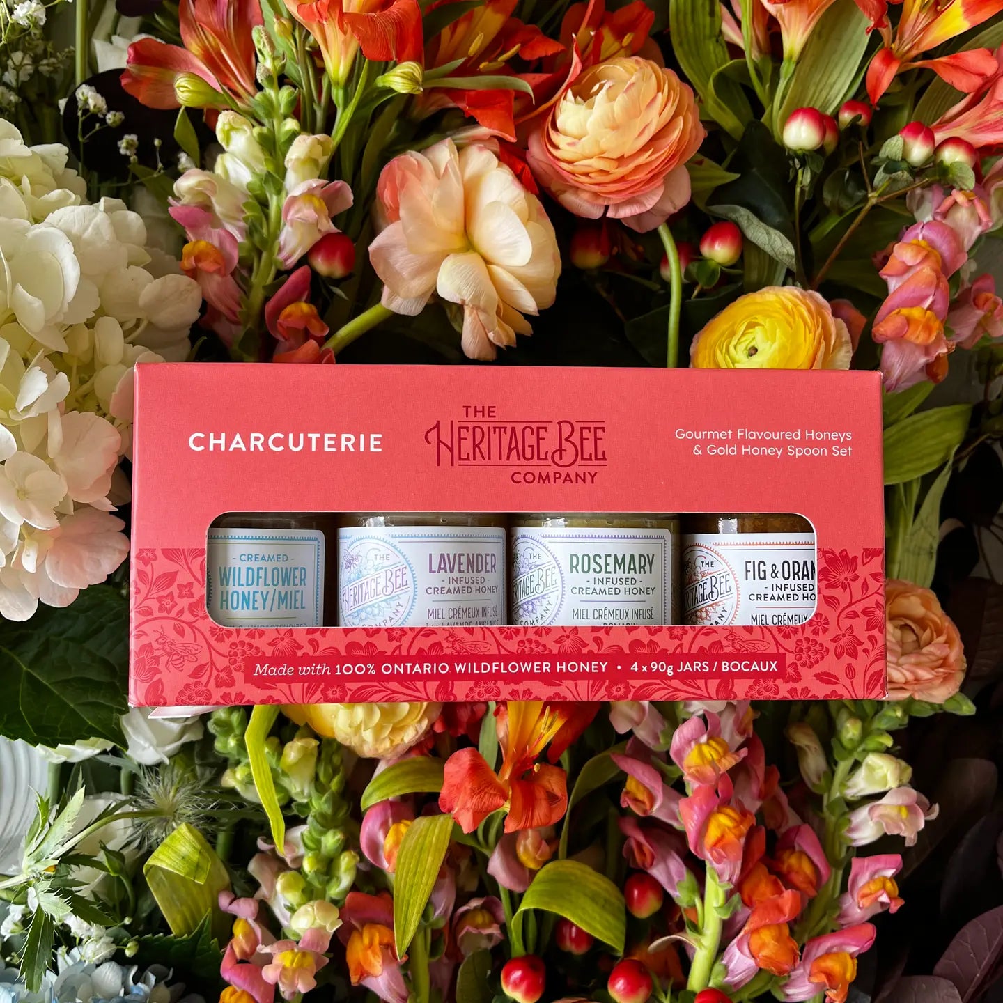 The perfect collection of handcrafted premium honeys for entertaining each CHARCUTERIE Gourmet Honey Gift Set Includes