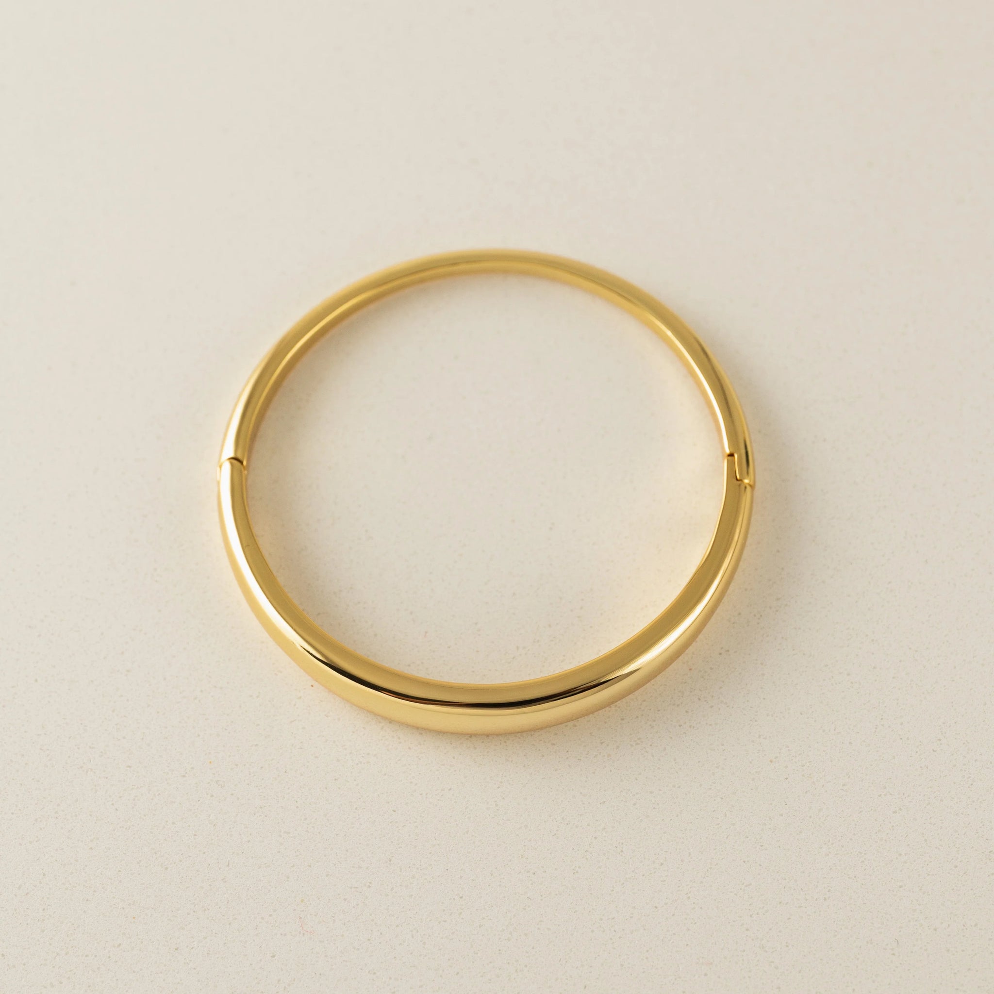 Lightweight yet bold, the Crest Click Bangle delivers understated luxury with its brass construction and luxe 14K gold plating. The satisfying click closure keeps it secure through your day, while the smooth, polished finish works beautifully solo or layered with other pieces. A gift-worthy staple that feels as good as it looks.