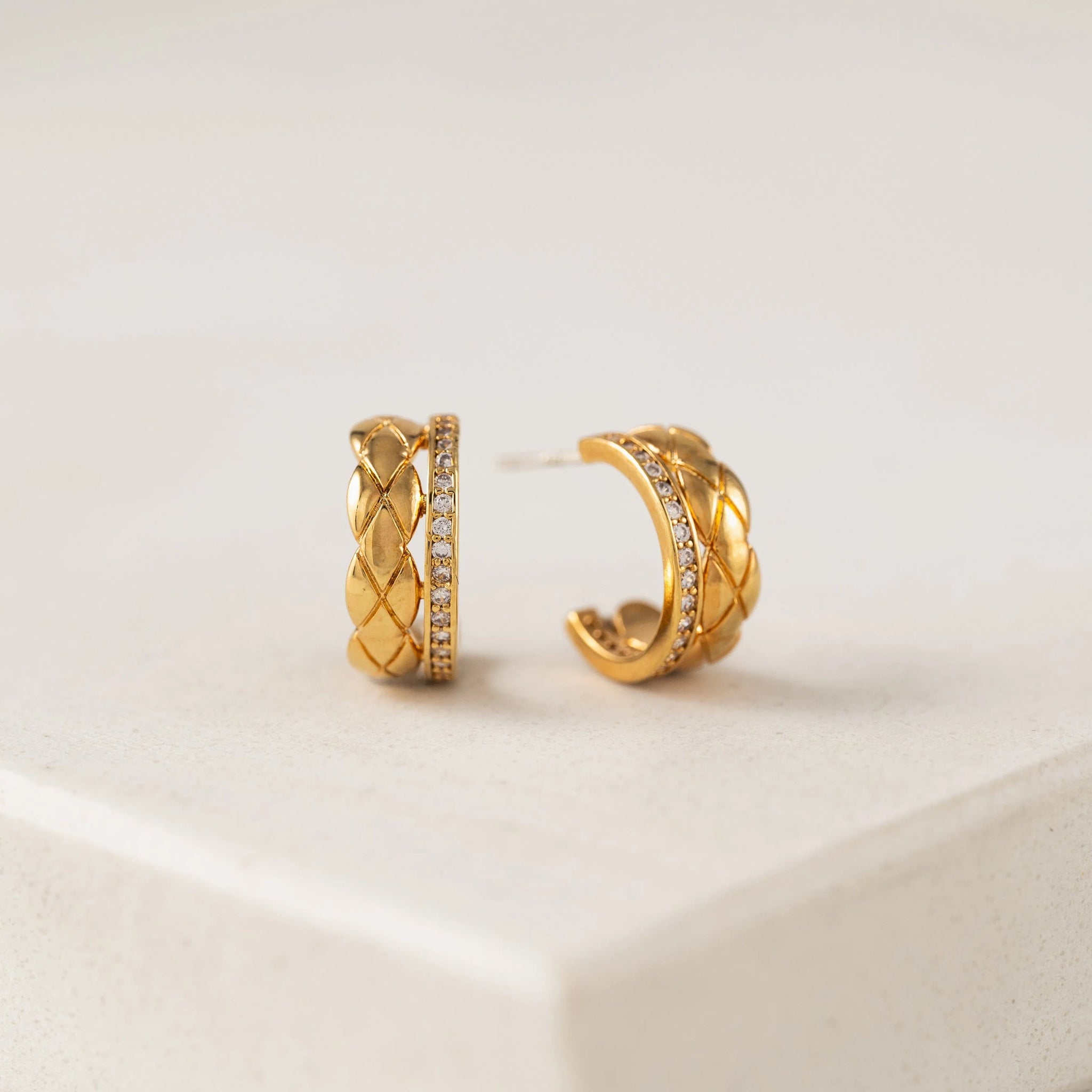 A double hoop earring that delivers on style. With a textural finish and pavé detailing, these hoops shine a light on you.